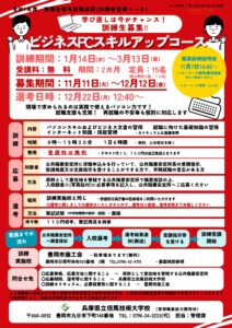 離職者等再就職訓練 冬コース「ビジネスPCスキルアップコース」